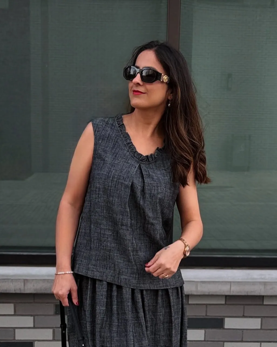 Cotton And Linen Plain Sleeveless Top With Skirt Two-piece Set